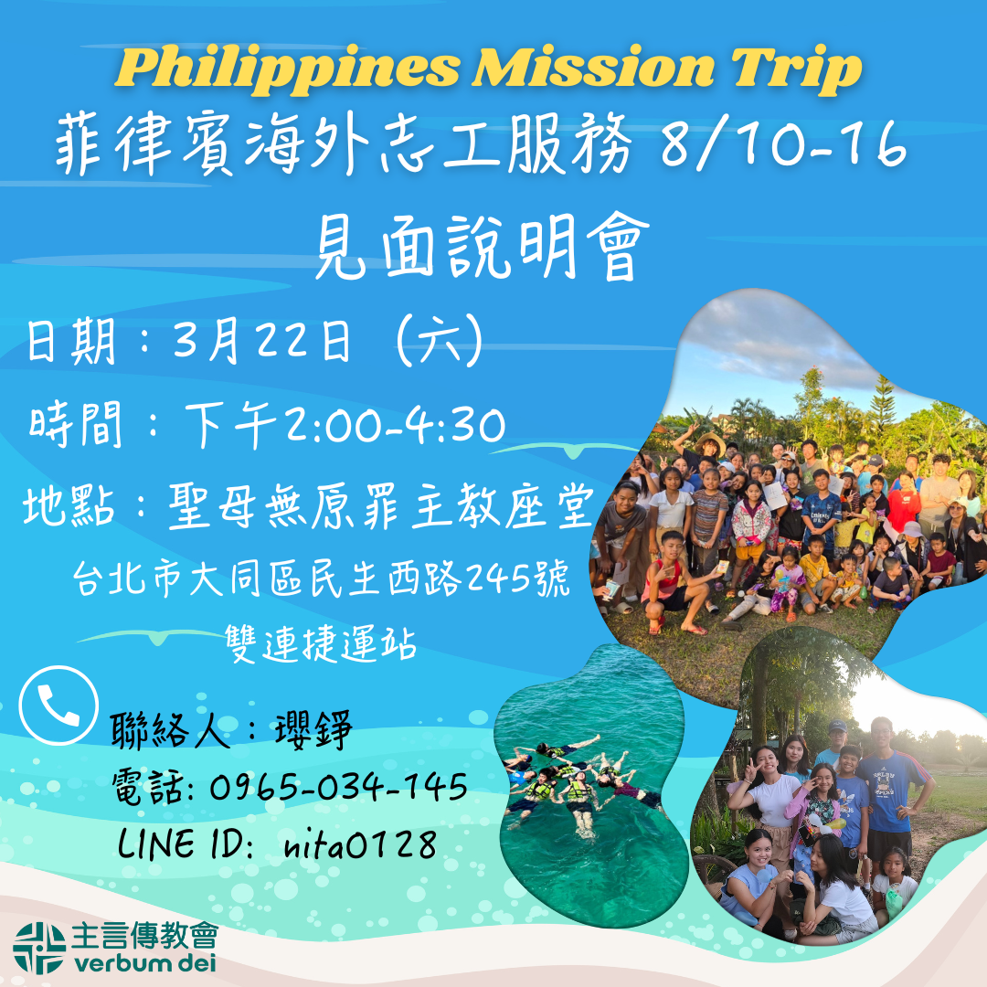 詳情,請聯絡主言傳教會(手機/Line ID:0937 898 034 )