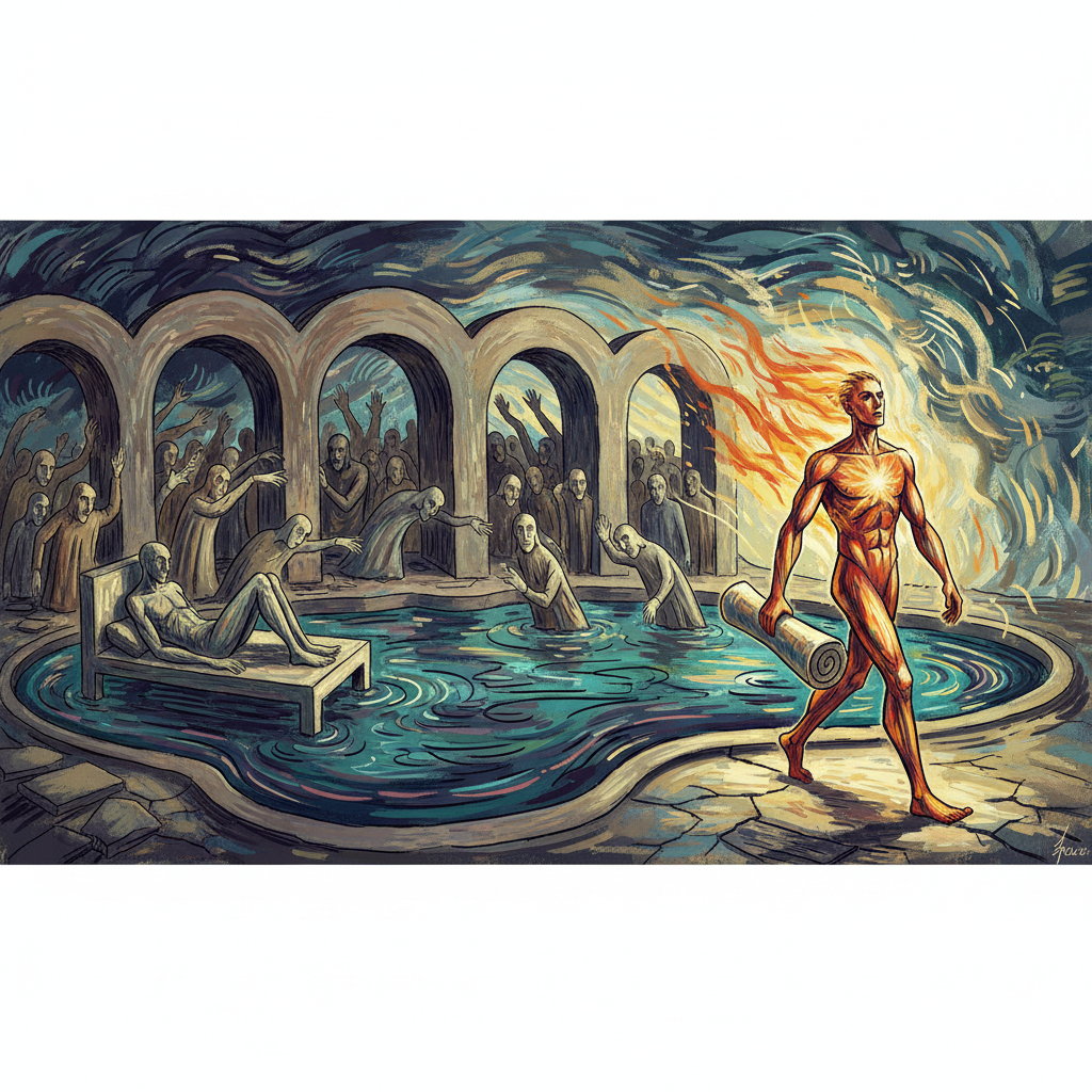 想一想,一個患病三十八年的人,心中到底有什麼樣的感受呢?也許是充滿抱怨、絕望、憤怒、無奈……也許也免不了對天主的懷疑和不理解。果然,當耶穌遇見這位病患時,他已經陷入自暴自棄、怨天尤人的狀態。這些,主耶穌都知道,所以沒有叫他多做什麼,而是當下叫他「起來!」隨手撿起他躺臥的那墊子,開始行走。這人也真的這樣做了!這一幕反映出耶穌對我們的憐憫。今天,祂仍然在我們心深處無條件的治癒我們,愛著我們。試想,有多少時候,我們會說,時間能夠醫治一切傷痛,但你可曾想過,在這世間,也有耶穌的工作,讓我們成長,堅強?然而,只有耶穌一個人的付出是不夠成就人完全的得救。聖奧思定說:「天主創造我們,不需要我們,但祂為救贖我們,不願沒有我們」。意思是說,天主為了拯救我們,需要我們的配合。在福音中,雖然癱瘓人的身體被耶穌治癒了,但他的心神仍然因為三十八年的委屈而傷痕累累,而選擇背叛那醫治他的耶穌。最後,這人選擇離開耶穌,選擇回到黑暗中。同樣,長期累積的情緒、惡念、習慣等等不會在一夜之間就改過,而是需要我們每天耐心地配合耶穌的治癒,每天多一點感恩,多一點勇氣做對的事情,多一點寬容,放下內心的仇恨和負面想法等。這樣一點一滴的和耶穌配合,我們便會一直走在光明的道路上,也讓更多的人認識耶穌的好。
