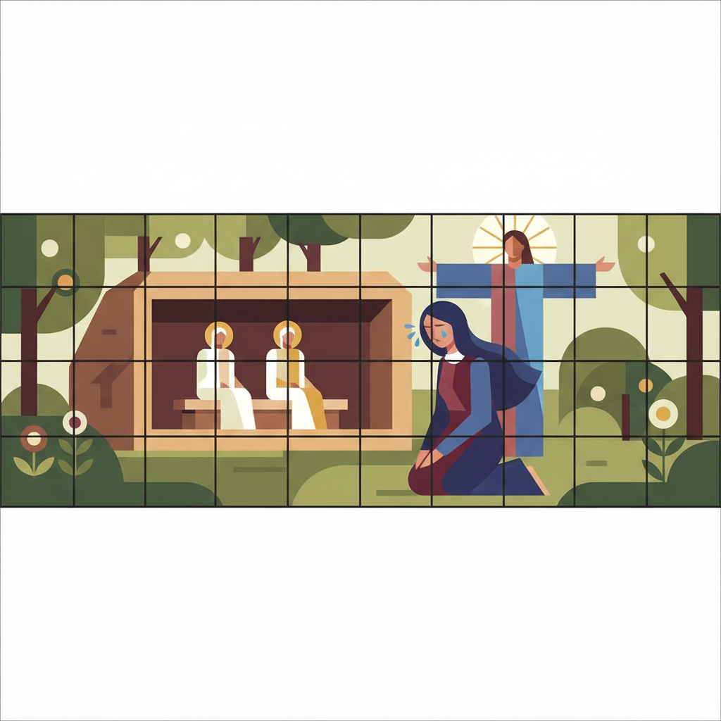 復活節八日慶期 若望福音二十11-18 聆聽聖言 瑪利亞卻站在墳墓外邊痛哭;她痛哭的時候,就俯身向墳墓裏面窺看…